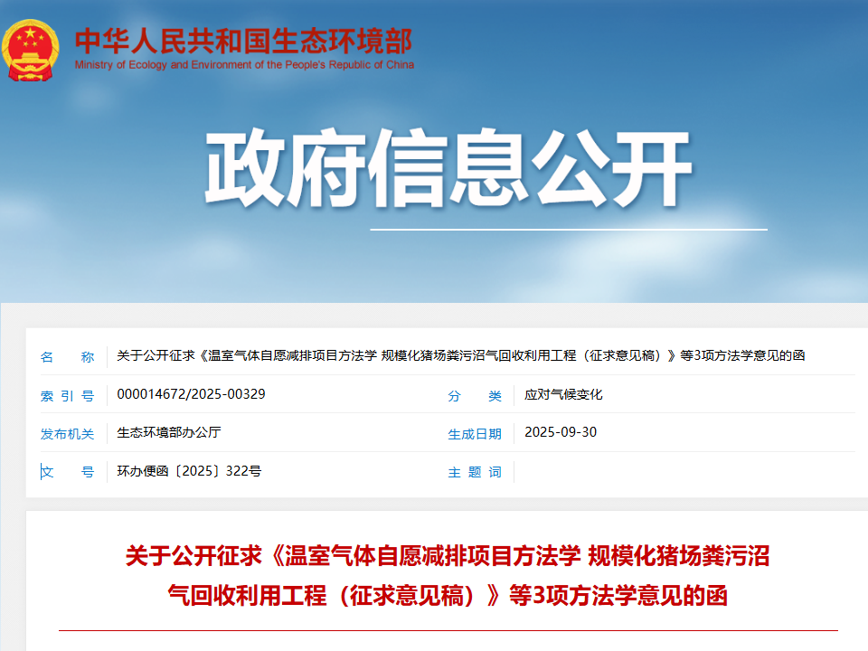 近日,由北京科吉環(huán)境技術發(fā)展有限公司(以下簡稱“科吉”)參編的規(guī)模化豬場糞污沼氣回收利用工程CCER方法學正式進入征求意見階段,這是生態(tài)環(huán)境部發(fā)布的第四批溫室氣體自愿減排項目方法學。為構建完善全國溫室氣體...